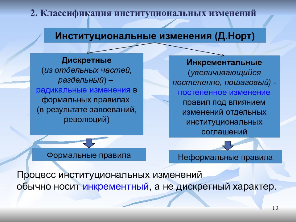Слайд 10: 2. Классификация институциональных изменений
