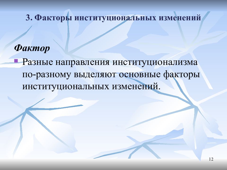 Слайд 12: 3. Факторы институциональных изменений