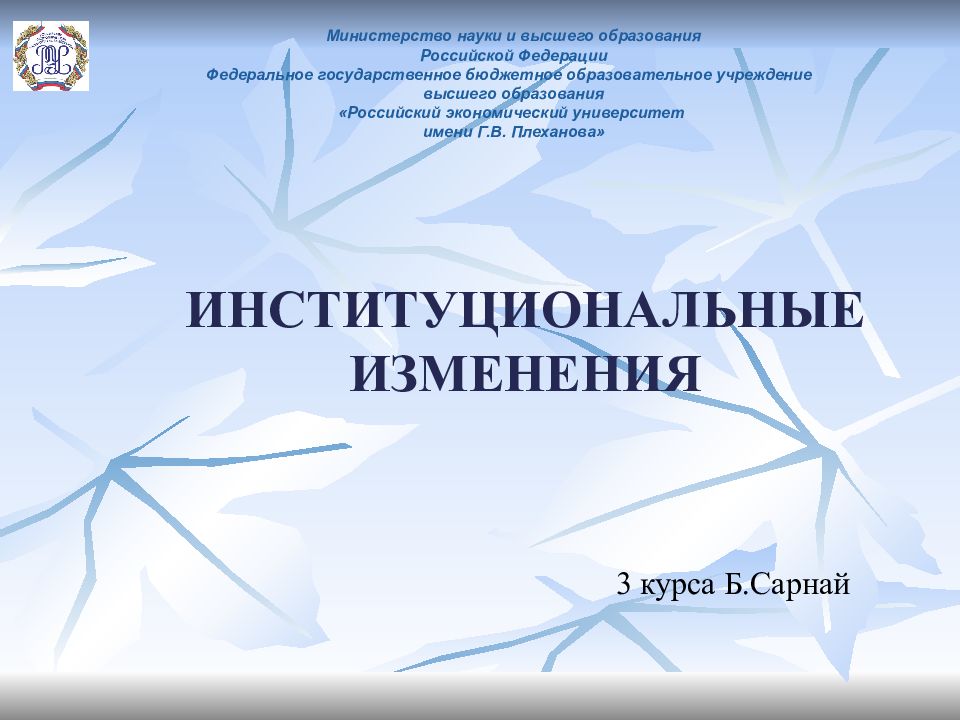 3 курса Б.Сарнай Министерство науки и высшего образования Российской Федерации Федеральное государственное бюджетное образовательное учреждение высшего образования «Российский экономический университет имени Г.В. Плеханова»