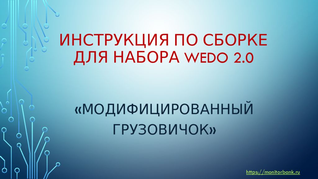 Первый слайд презентации: Инструкция по сборке для набора wedo 2.0