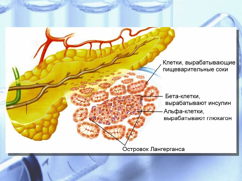 В 60-е годы 18 века немецкий студент Поль Лангерганс обнаружил «маленькие клетки с блестящим содержимым, расположенные группами хаотично по всей поджелудочной железе ». В 1889 Оскар Минковский сделал выводы, что поджелудочная железа выполняет две функции: вырабатывает пищеварительные соки и вещество, которое выделяется сразу в кровь и регулирует уровень глюкозы.