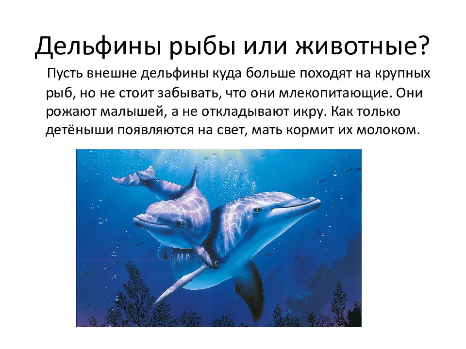Пусть внешне дельфины куда больше походят на крупных рыб, но не стоит забывать, что они млекопитающие. Они рожают малышей, а не откладывают икру. Как только детёныши появляются на свет, мать кормит их молоком.