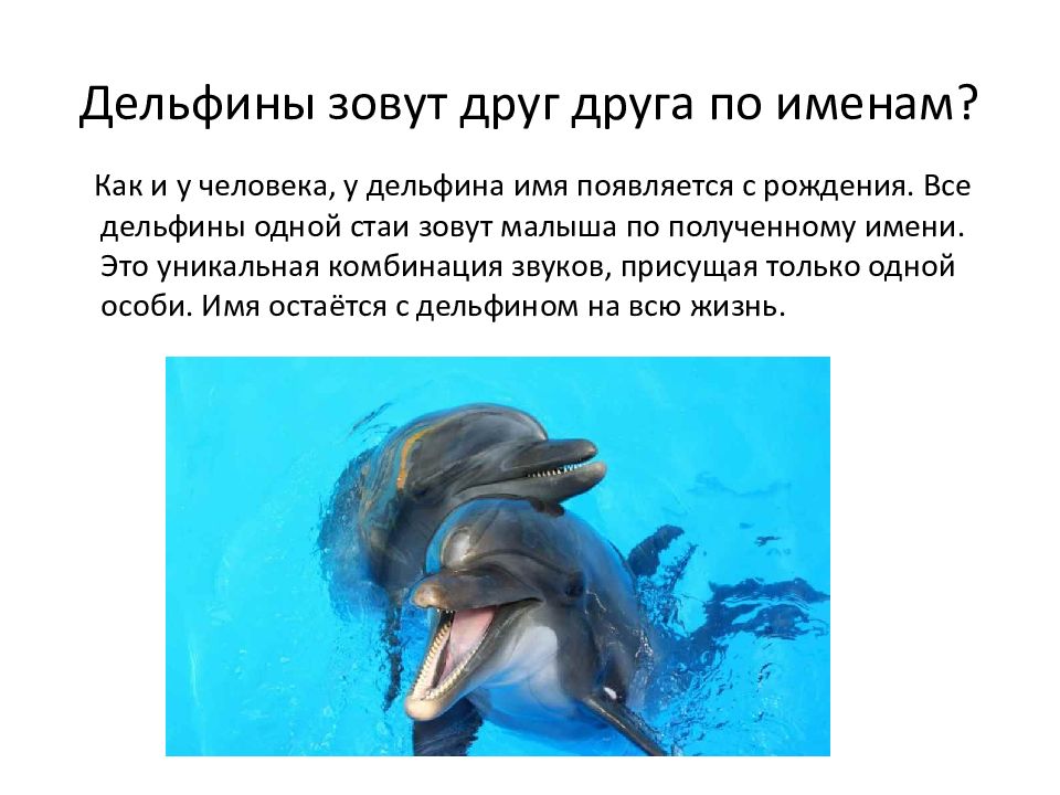 Слайд 9: Дельфины зовут друг друга по именам ?