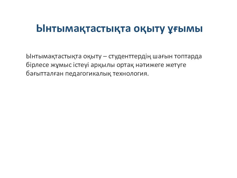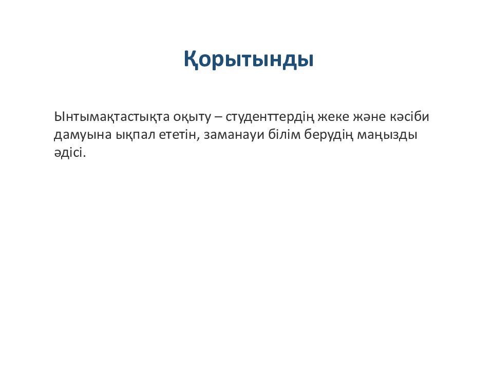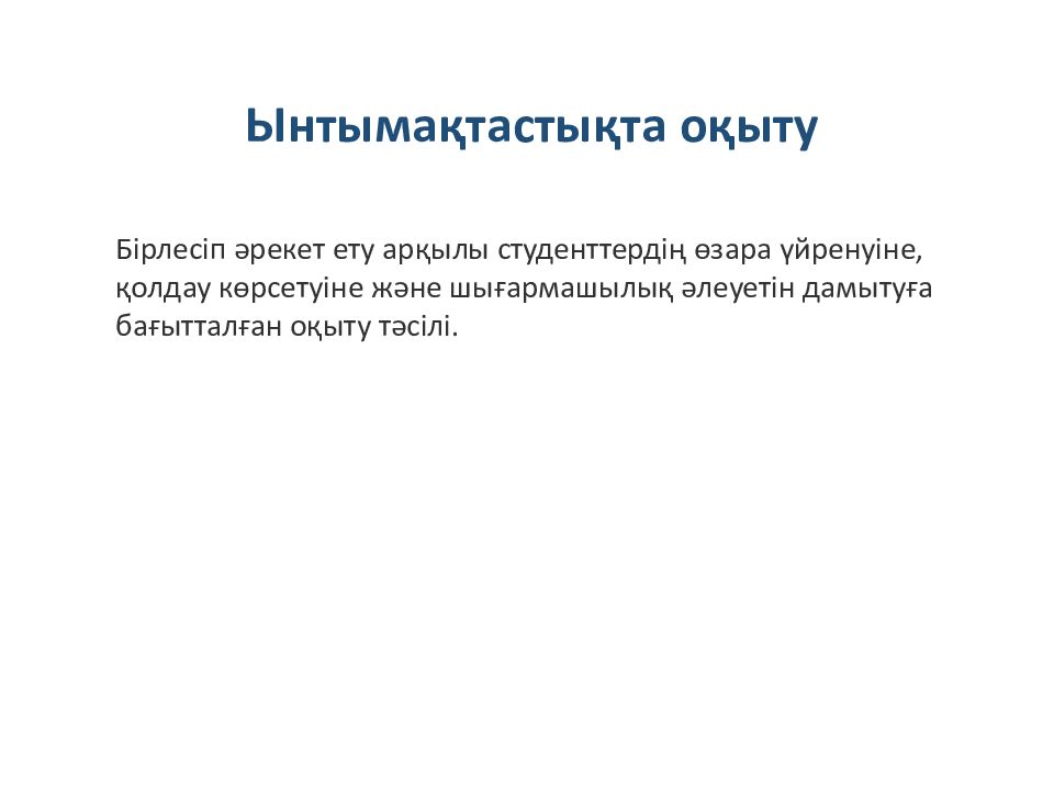 Последний слайд презентации: Ынтымақтастықта оқыту Бірлесіп әрекет ету арқылы студенттердің өзара үйренуіне,