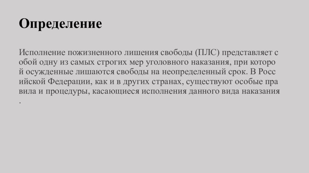 Первый слайд презентации: Исполнение пожизненного лишения свободы