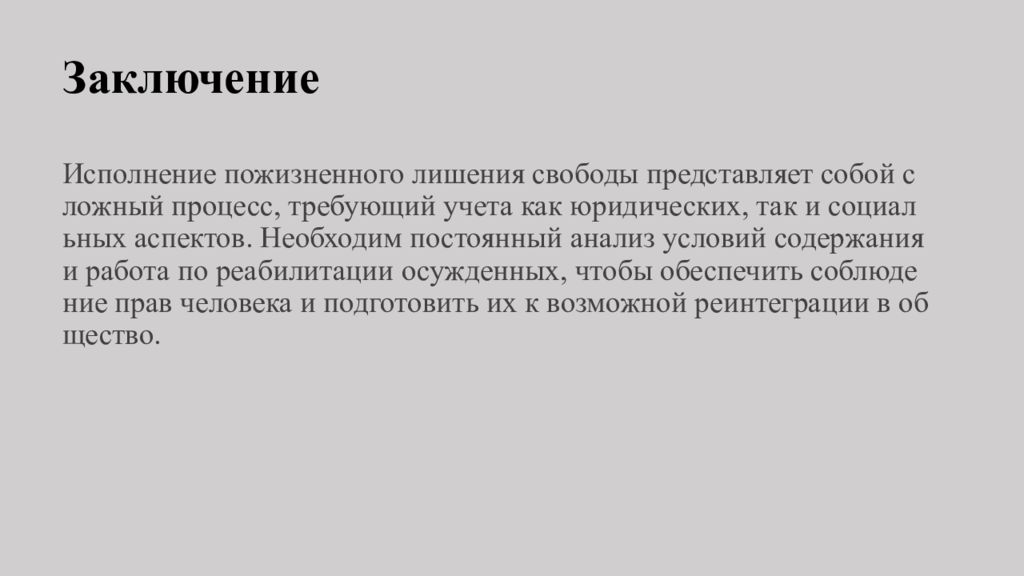Последний слайд презентации: Исполнение пожизненного лишения свободы: Заключение