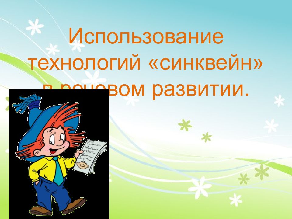 Последний слайд презентации: Использование технологий «синквейн» в речевом развитии