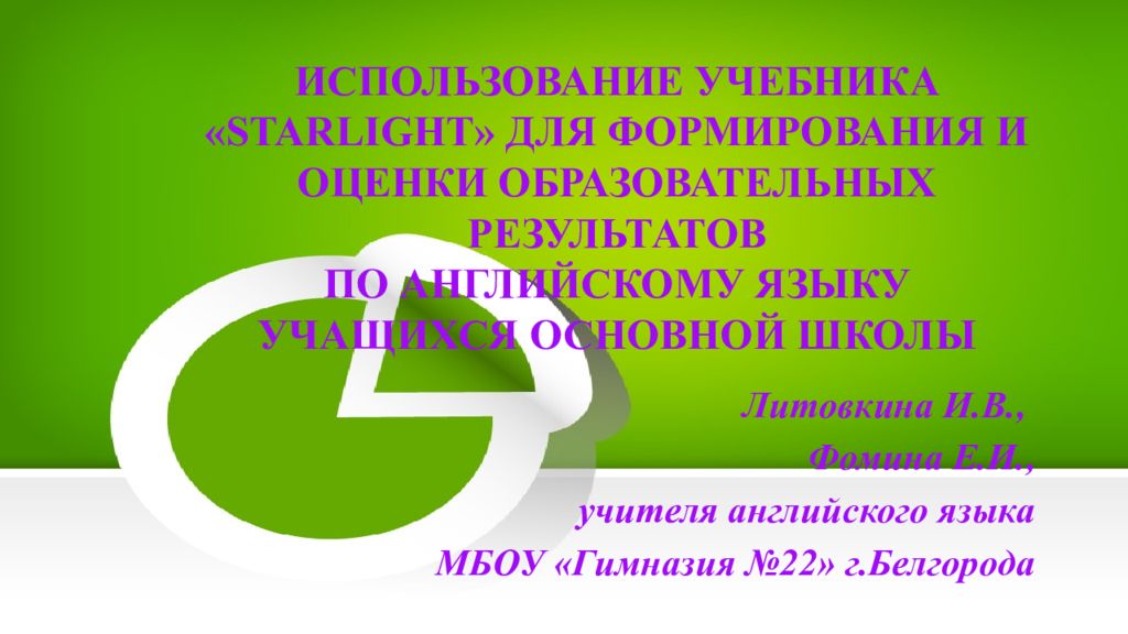 Литовкина И.В., Фомина Е.И., учителя английского языка МБОУ «Гимназия №22» г.Белгорода