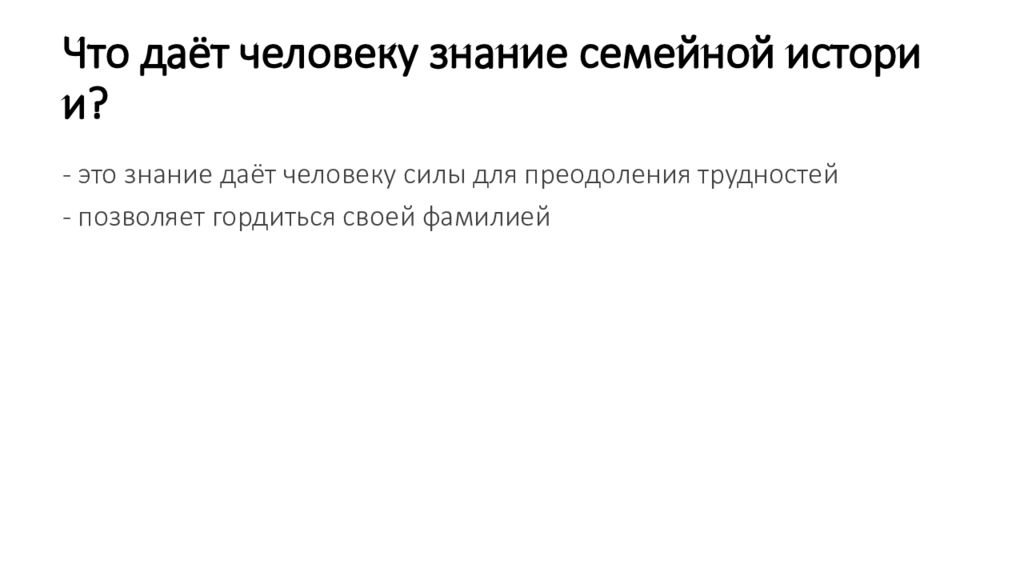 Слайд 28: Что даёт человеку знание семейной истории ?