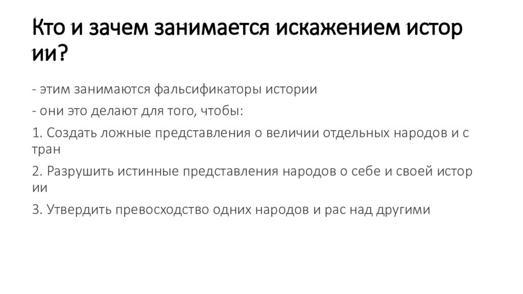Слайд 34: Кто и зачем занимается искажением истории ?