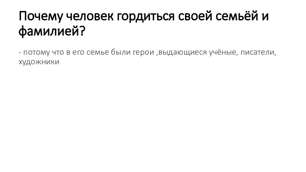 Слайд 31: Почему человек гордиться своей семьёй и фамилией ?