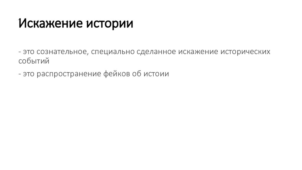 - это сознательное, специально сделанное искажение исторических событий - это распространение фейков об истоии