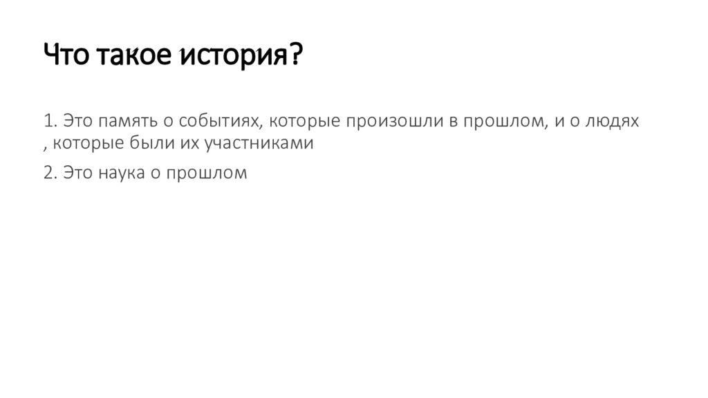 1. Это память о событиях, которые произошли в прошлом, и о людях, которые были их участниками 2. Это наука о прошлом