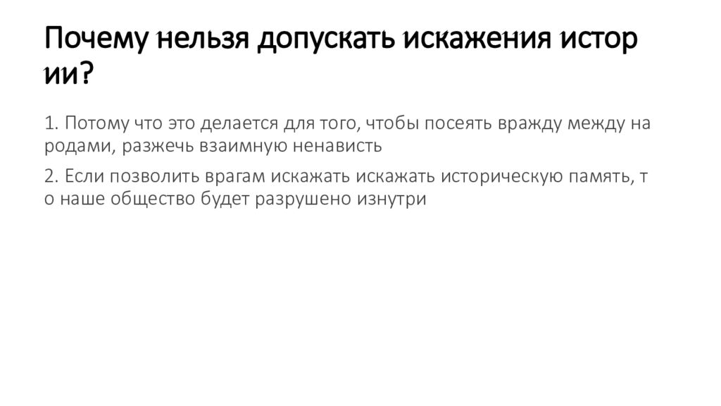 Слайд 35: Почему нельзя допускать искажения истории ?