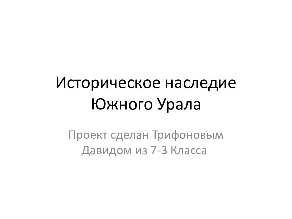 Первый слайд презентации: Историческое наследие Южного У рала