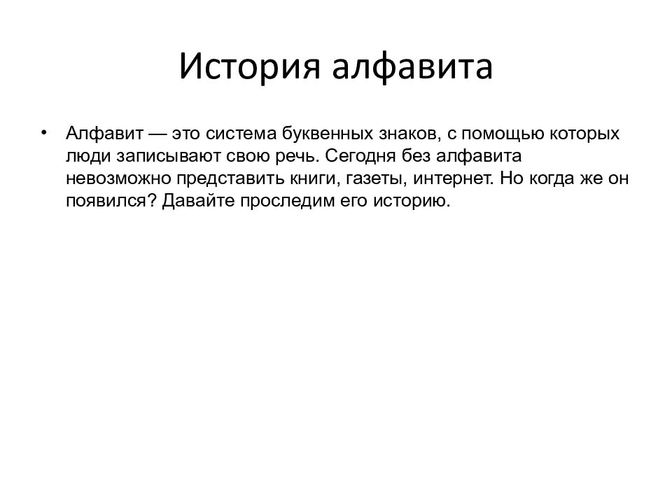 Первый слайд презентации: История алфавита