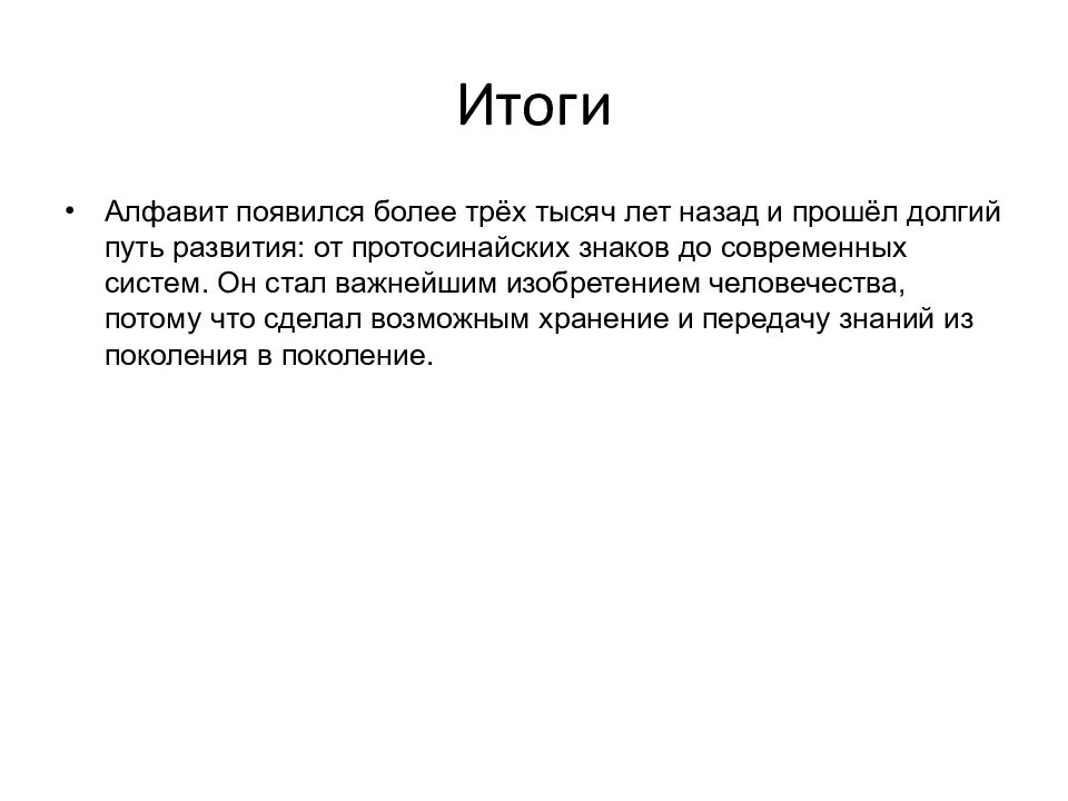 Последний слайд презентации: История алфавита: Итоги