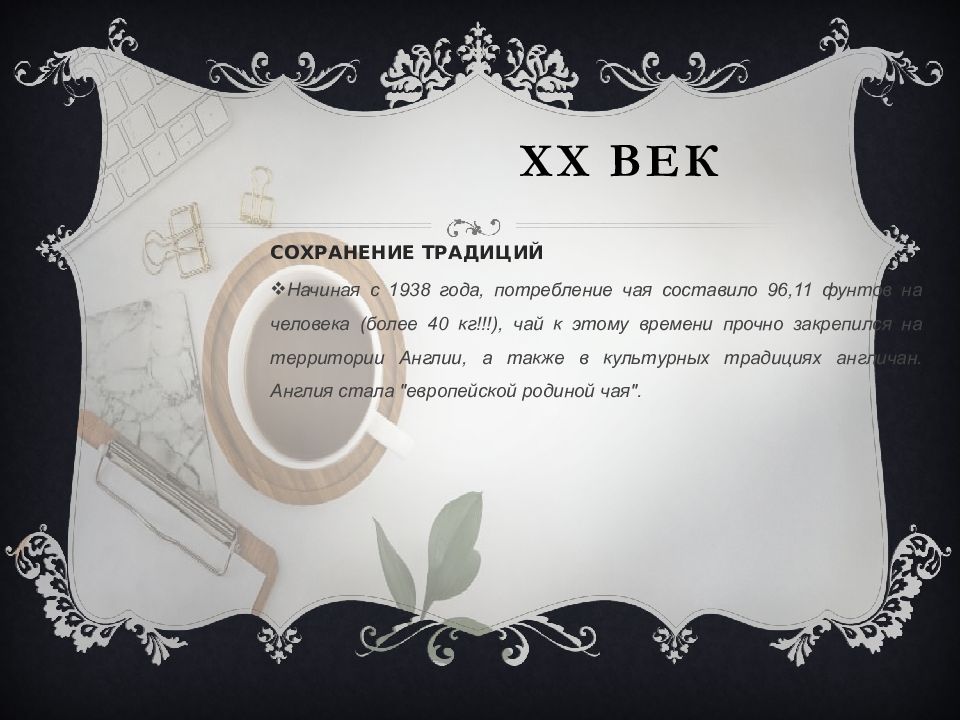 Последний слайд презентации: История английского чая: XX ВЕК
