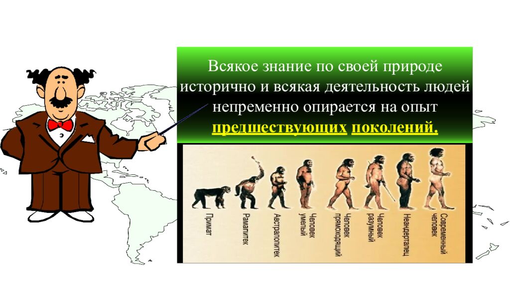 Всякое знание по своей природе исторично и всякая деятельность людей непременно опирается на опыт предшествующих поколений.