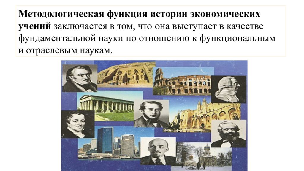 Методологическая функция истории экономических учений заключается в том, что она выступает в качестве фундаментальной науки по отношению к функциональным и отраслевым наукам.