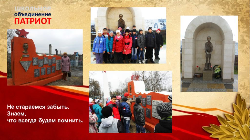 ПАТРИОТ объединение школьное Не стараемся забыть. Знаем, что всегда будем помнить.