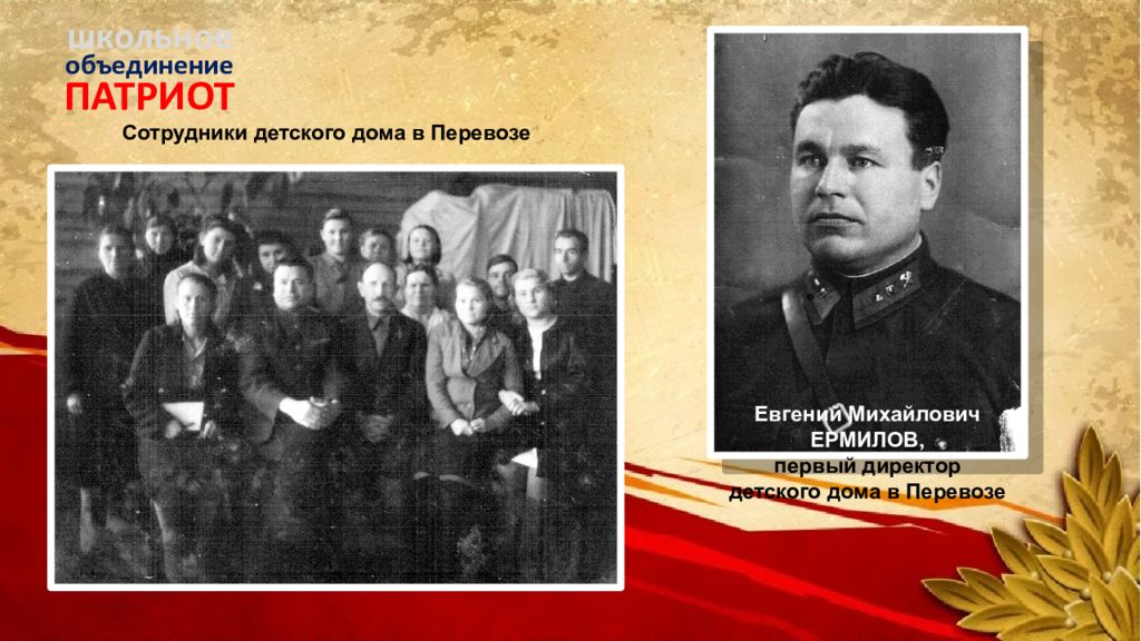 ПАТРИОТ объединение школьное Сотрудники детского дома в Перевозе Евгений Михайлович ЕРМИЛОВ, первый директор детского дома в Перевозе