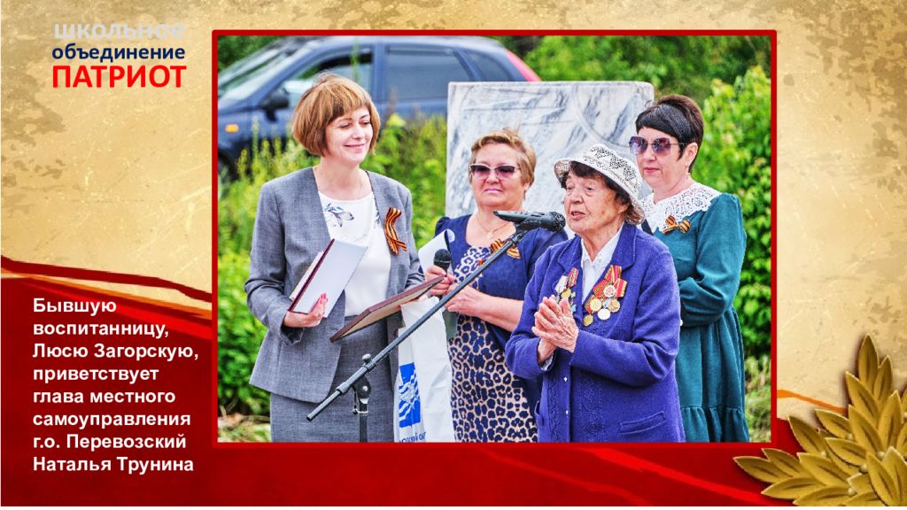 ПАТРИОТ объединение школьное Бывшую воспитанницу, Люсю Загорскую, приветствует глава местного самоуправления г.о. Перевозский Наталья Трунина