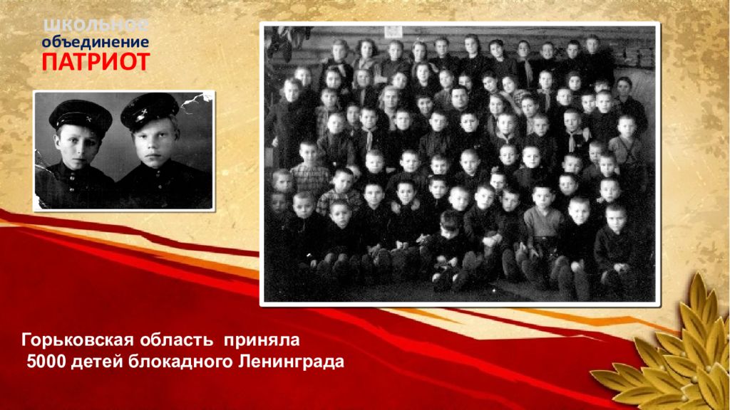 ПАТРИОТ объединение школьное Горьковская область приняла 5000 детей блокадного Ленинграда