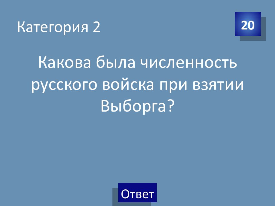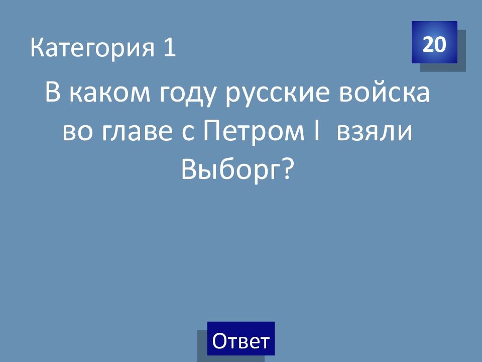 В каком году русские войска во главе с Петром I взяли Выборг? 2 0