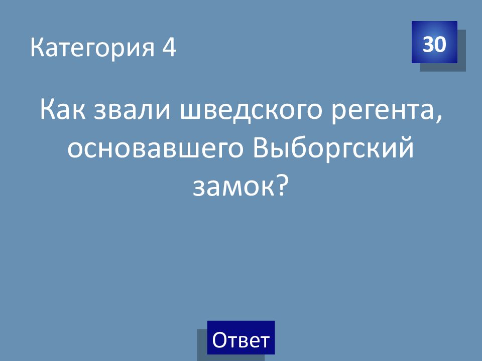 Как звали шведского регента, основавшего Выборгский замок? 3 0