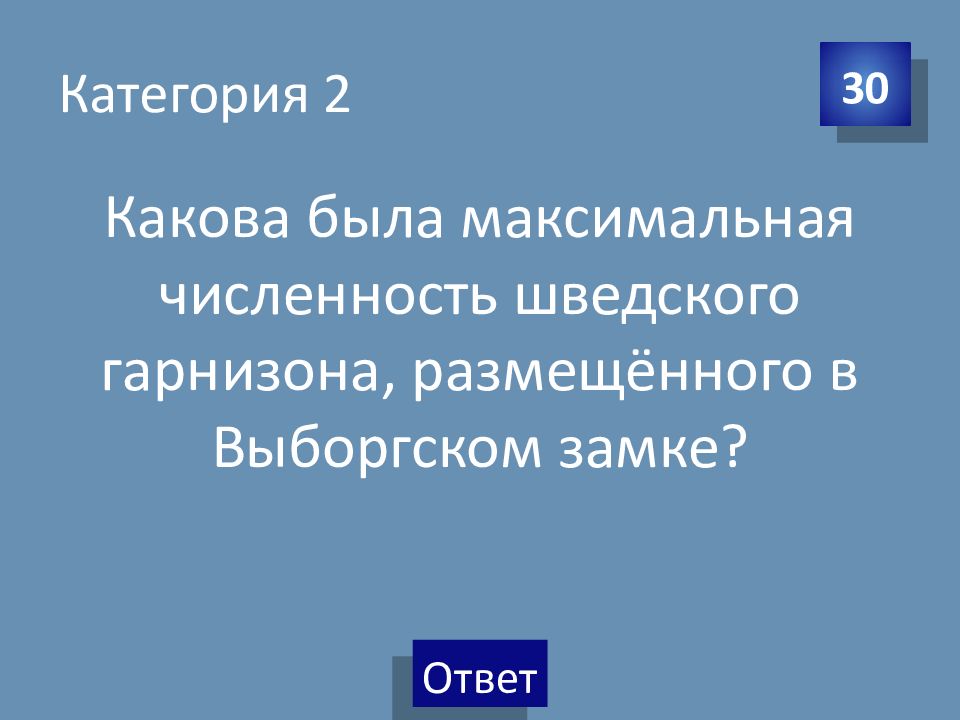 Какова была максимальная численность шведского гарнизона, размещённого в Выборгском замке? 3 0