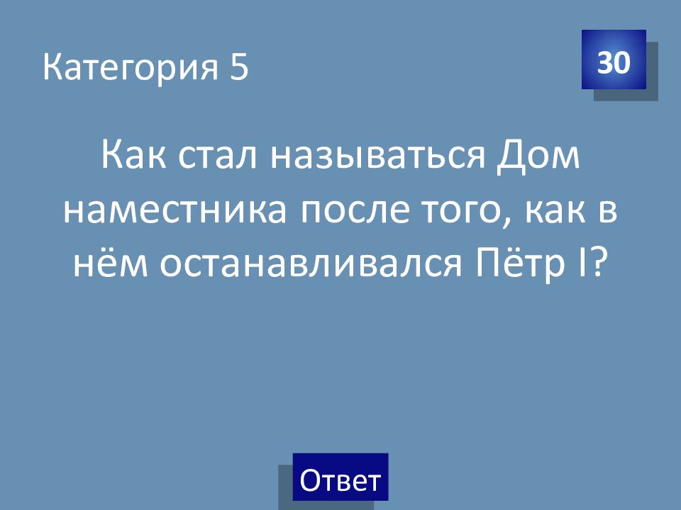 Как стал называться Дом наместника после того, как в нём останавливался Пётр I ? 3 0