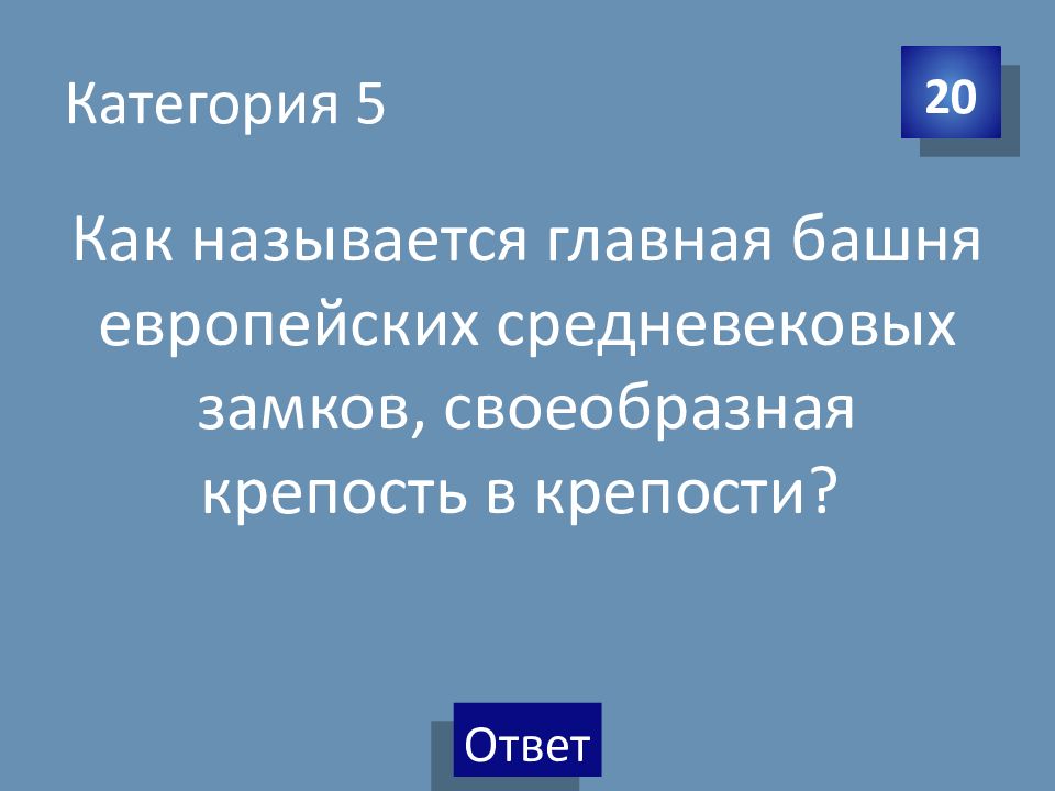 Как называется главная башня европейских средневековых замков, своеобразная крепость в крепости? 2 0