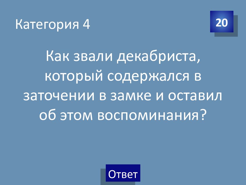 Как звали декабриста, который содержался в заточении в замке и оставил об этом воспоминания? 2 0