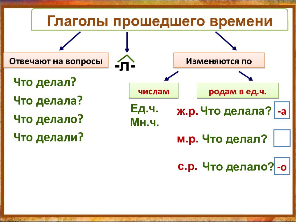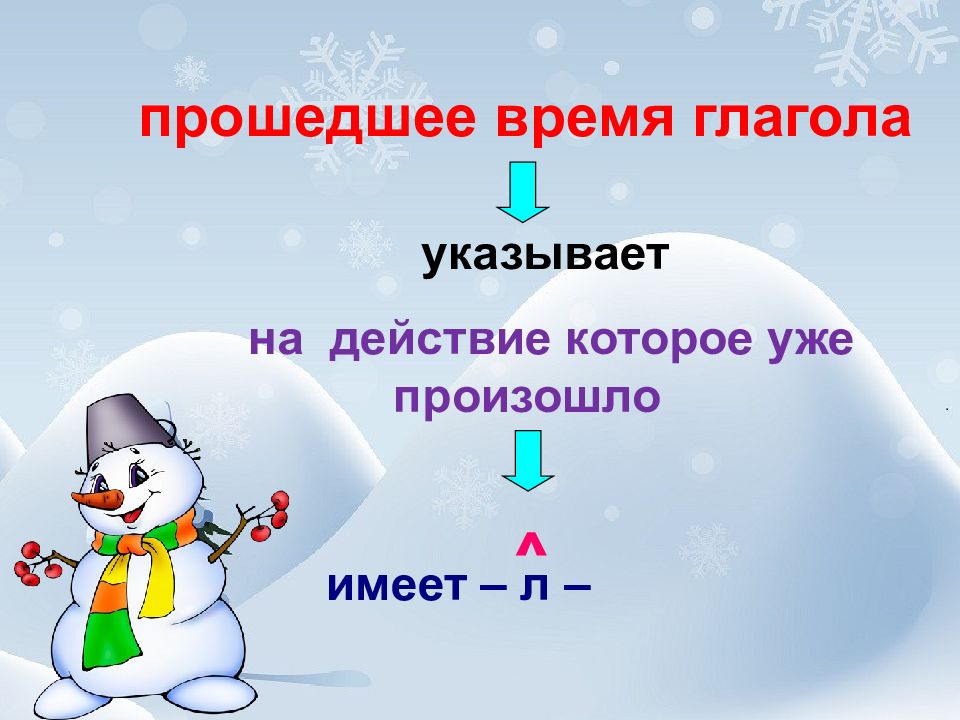 прошедшее время глагола указывает на действие которое уже произошло имеет – л – ^