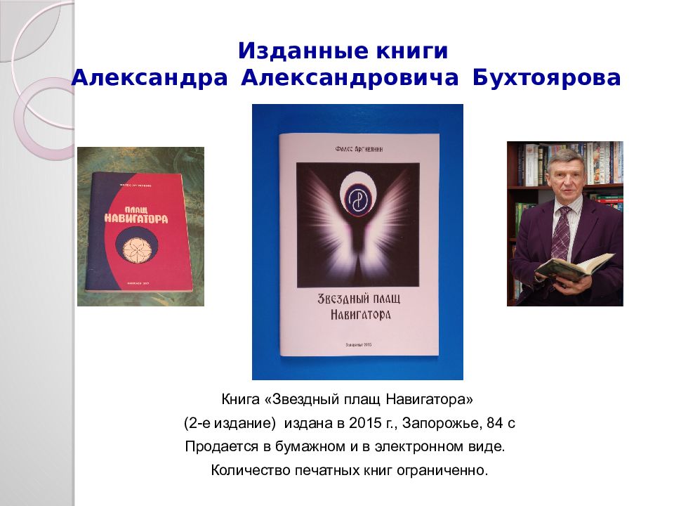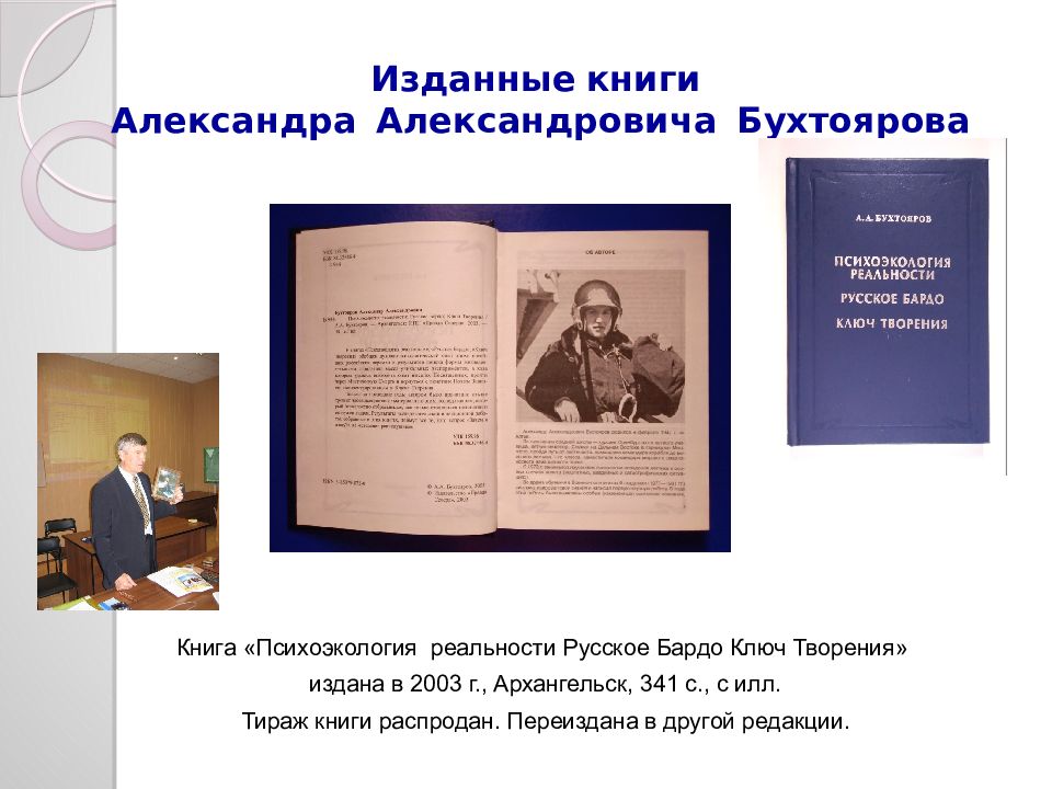Слайд 10: Изданные книги Александра Александровича Бухтоярова