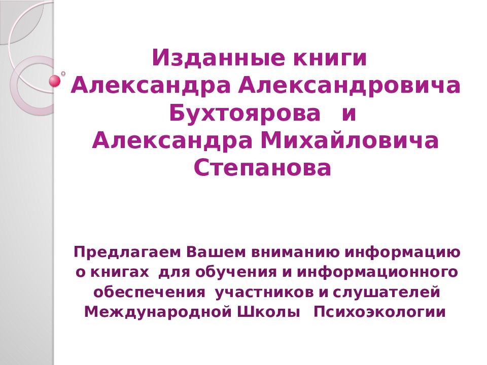 Первый слайд презентации: Изданные книги Александра Александровича Бухтоярова и Александра Михайловича Степанова