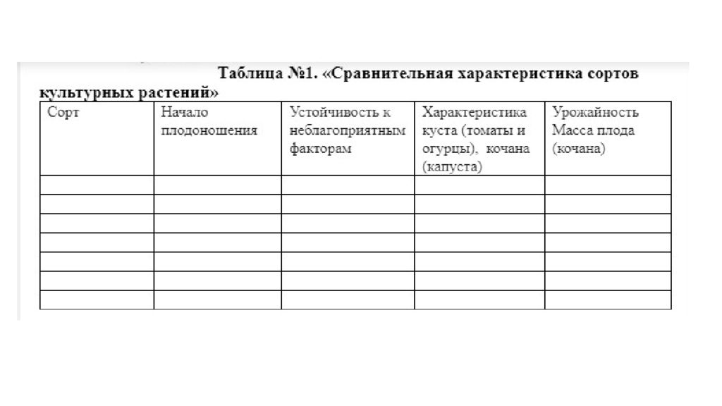 Название метода Характеристика Примеры сортов, полученных данным методом Задание 1. Заполните таблицу "Методы селекции растений"