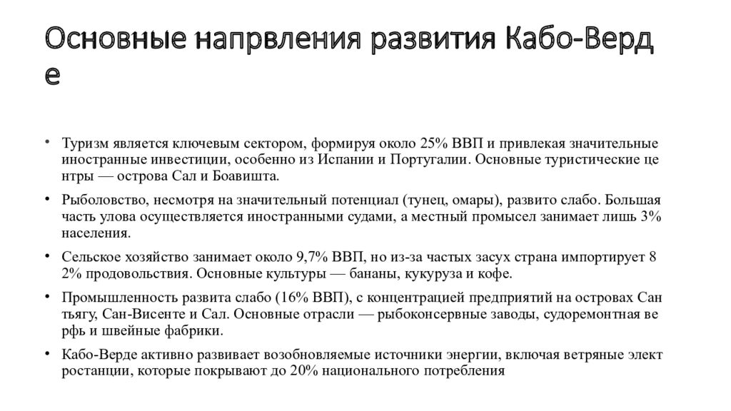 Слайд 14: Основные напрвления развития Кабо-Верде