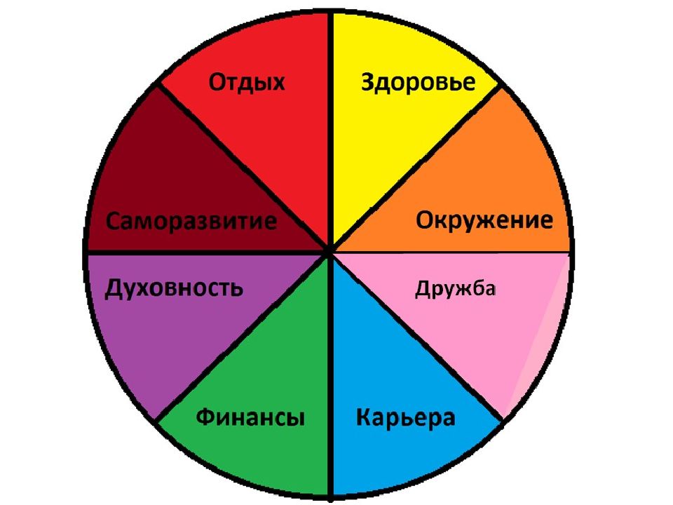 Рисуем круг – желательно использовать для этого большой лист, чтобы изображение было четким и читабельным впоследствии. Делим колесо жизни на значимые сферы – для каждого человека они будут свои. Оцениваем каждую сферу по 10-бальной системе – минимальный бал ставится ближе к центру круга, максимальный – к границе. Можно закрасить каждый жизненный параметр отдельным цветом. Анализируем готовый результат.