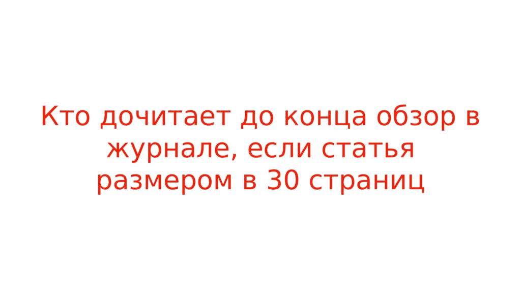 Слайд 13: Кто дочитает до конца обзор в журнале, если статья размером в 30 страниц