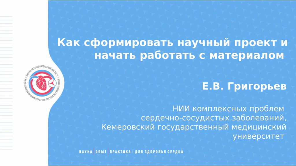 Как сформировать научный проект и начать работать с материалом Е.В. Григорьев НИИ комплексных проблем сердечно-сосудистых заболеваний, Кемеровский государственный медицинский университет