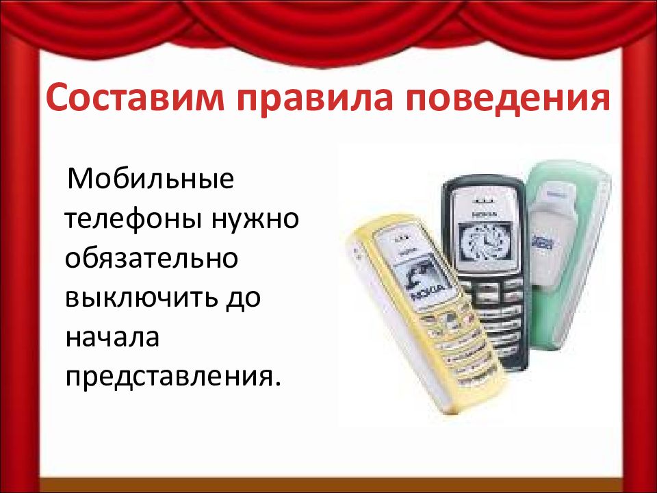 Мобильные телефоны нужно обязательно выключить до начала представления.