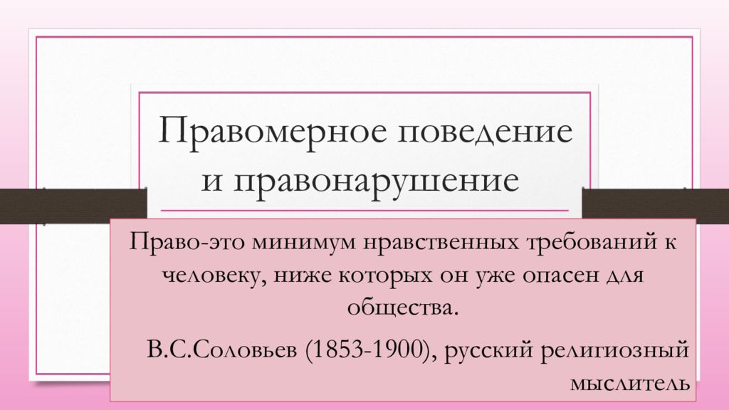 Право-это минимум нравственных требований к человеку, ниже которых он уже опасен для общества. В.С.Соловьев (1853-1900), русский религиозный мыслитель
