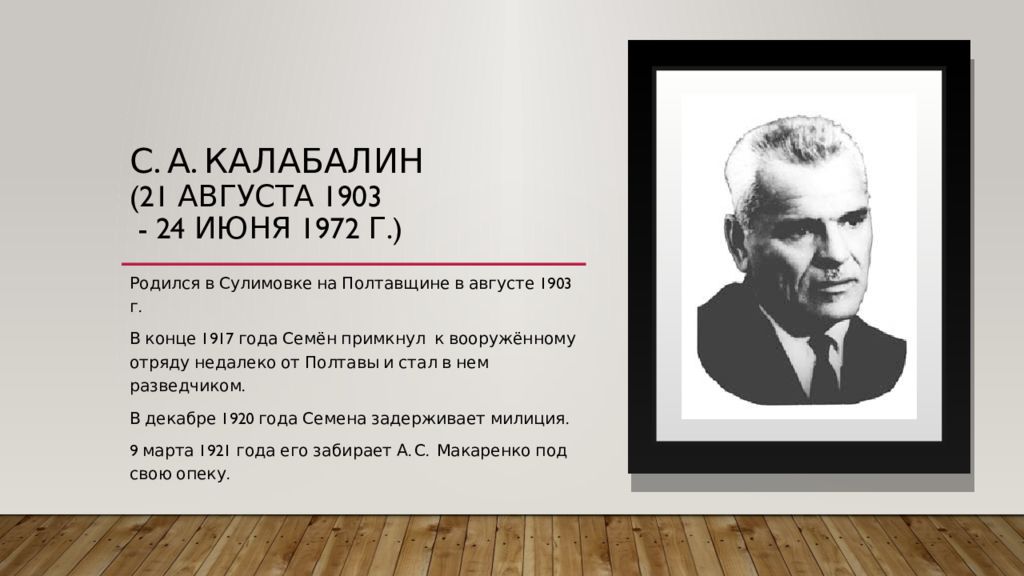 Слайд 2: С. А. Калабалин ( 21 августа 1903 - 24 июня 1972 г.)