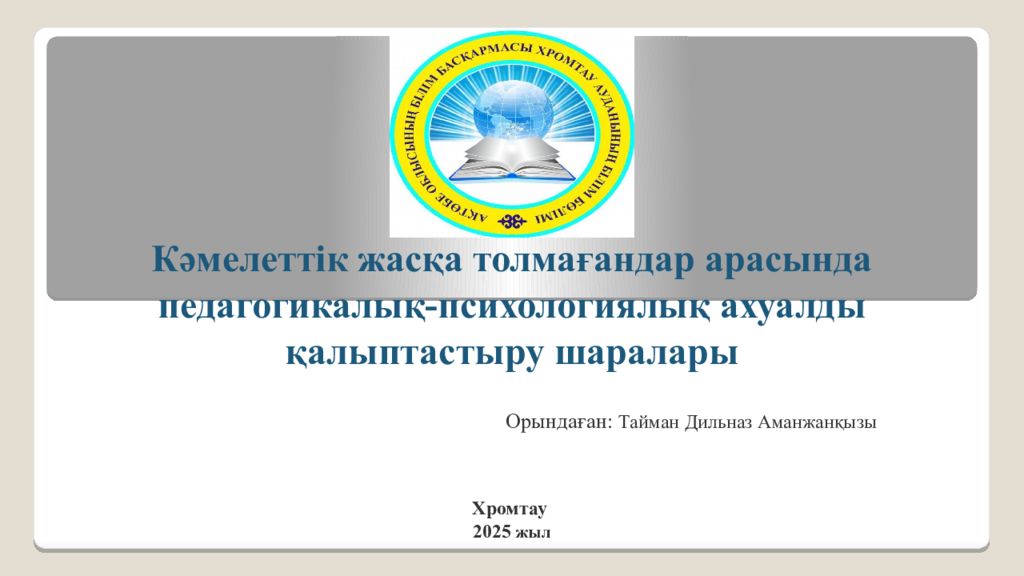 Кәмелеттік жасқа толмағандар арасында педагогикалық-психологиялық ахуалды қалыптастыру шаралары Орындаған: Тайман Дильназ Аманжанқызы Хромтау 2025 жыл