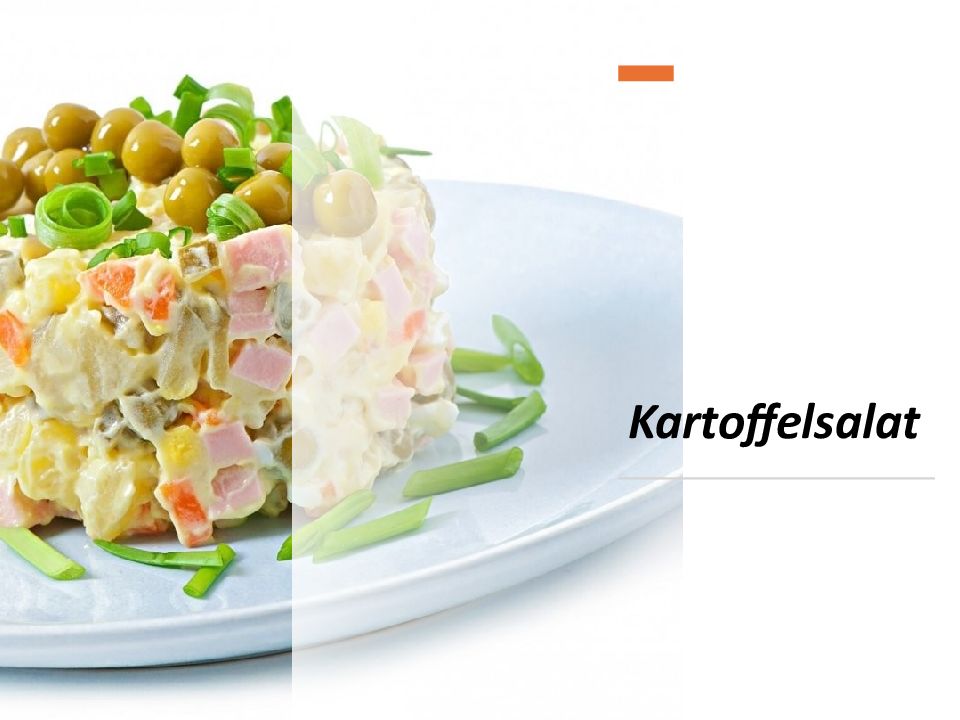Man... und man... schneidet Kartoffeln, Äpfel, Gurke, Eier, und Wurst in Würfel gibt in eine Schüssel.