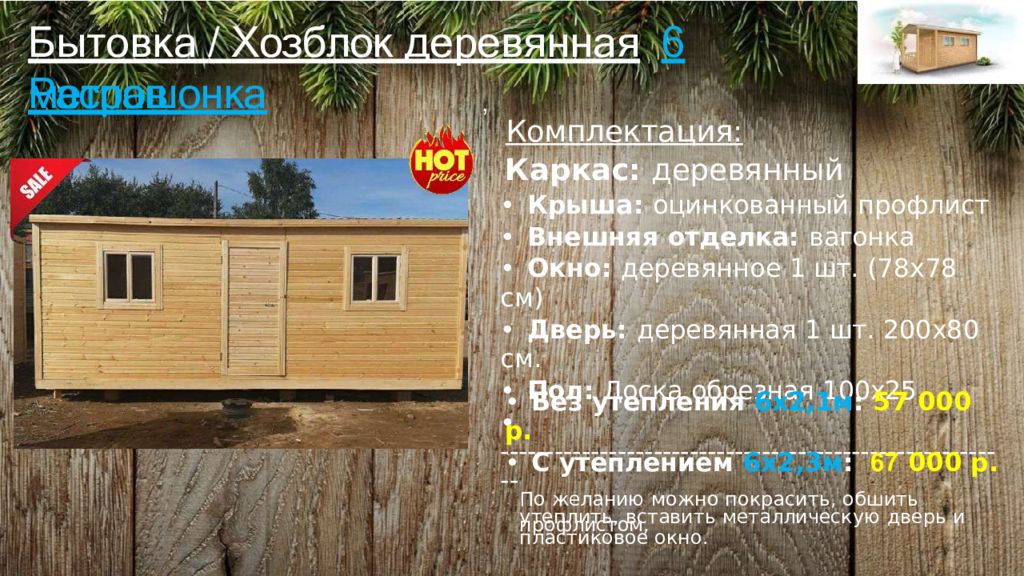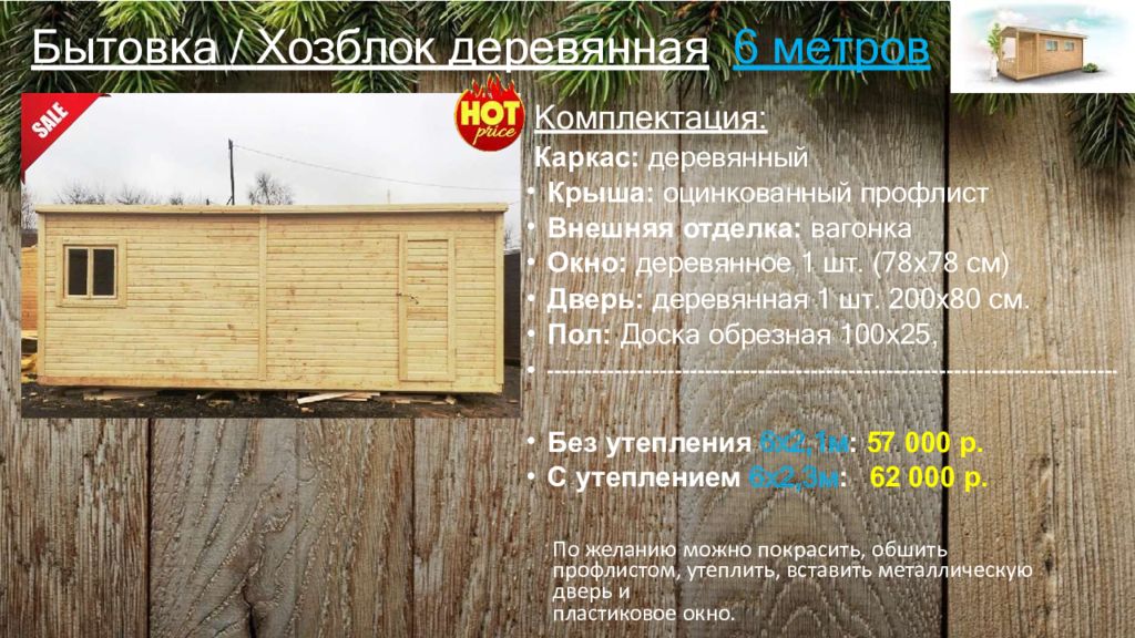 Слайд 8: Бытовка / Хозблок деревянная 6 метров