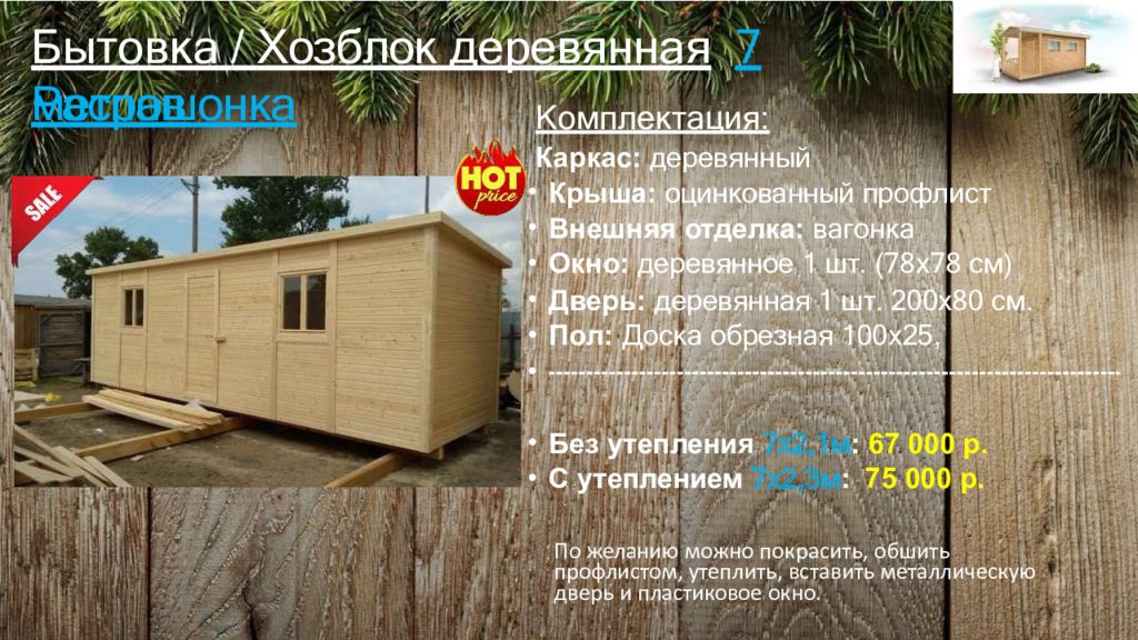 Слайд 9: Бытовка / Хозблок деревянная 7 метров