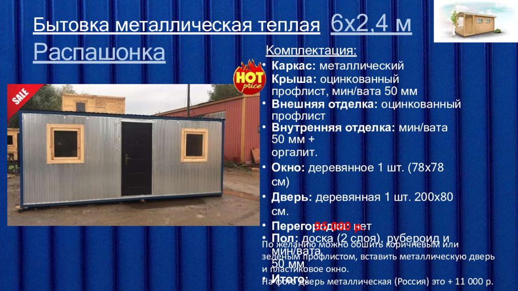 Слайд 13: Бытовка металлическая теплая 3х2,4 м